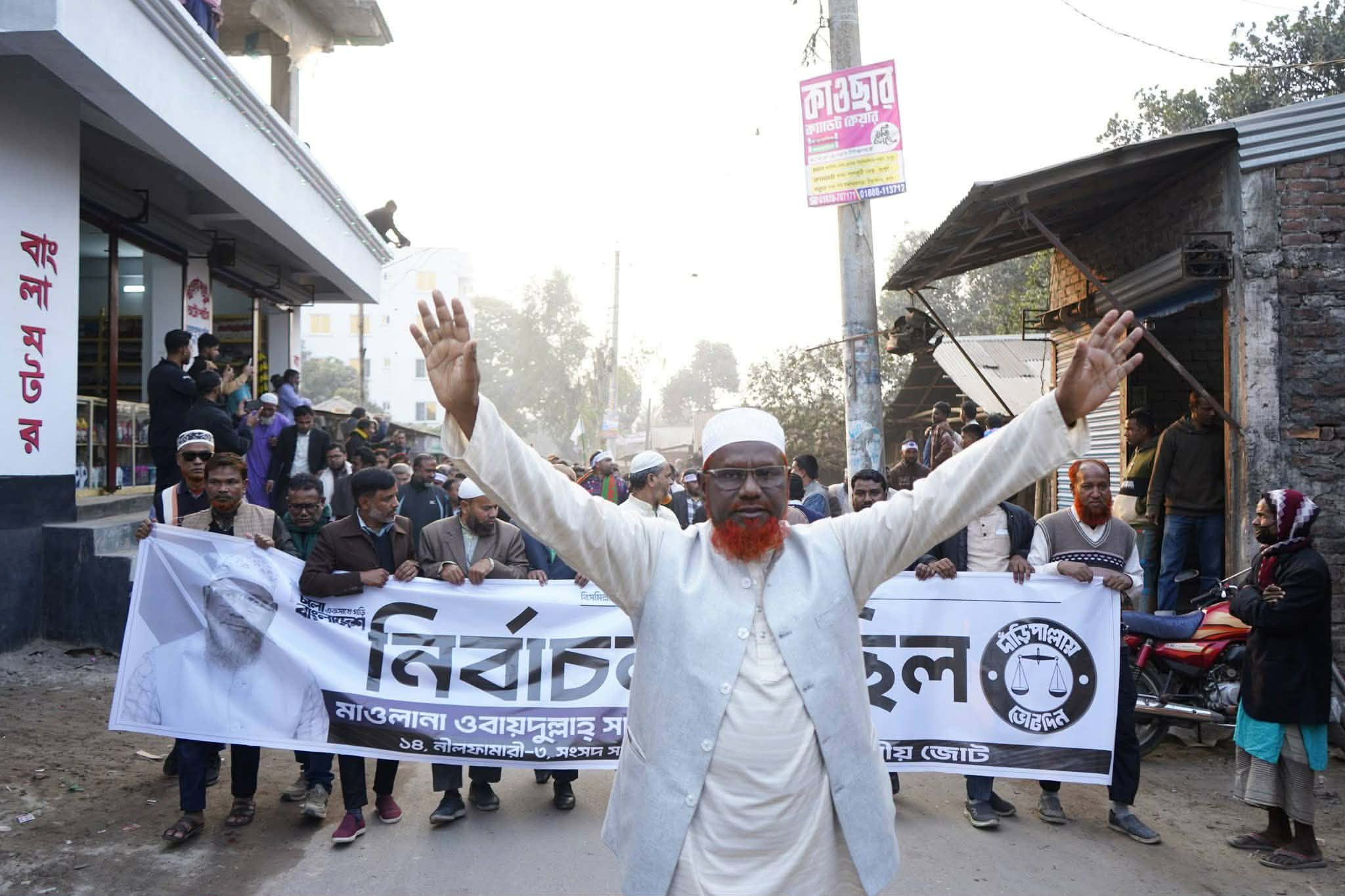 জলঢাকায় দাড়িপাল্লা মার্কার বিশাল নির্বাচনী মিছিল ও সোডাউন