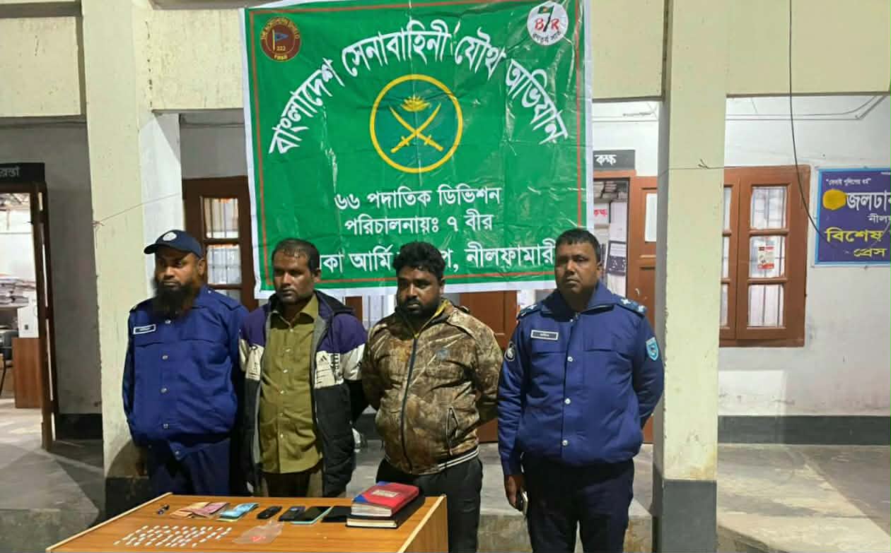 জলঢাকায় সেনাবাহিনী ও পুলিশের যৌথ অভিযানে দুই মাদক কারবারি আটক