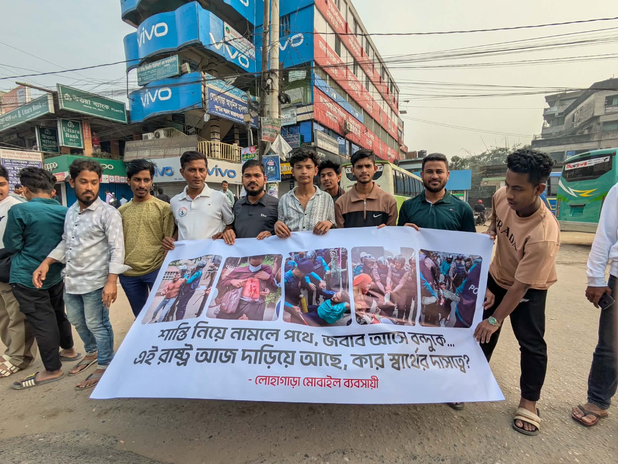 ন্যায্য অধিকার দাবিতে মোবাইল ব্যবসায়ীদের প্রতিবাদ মিছিল