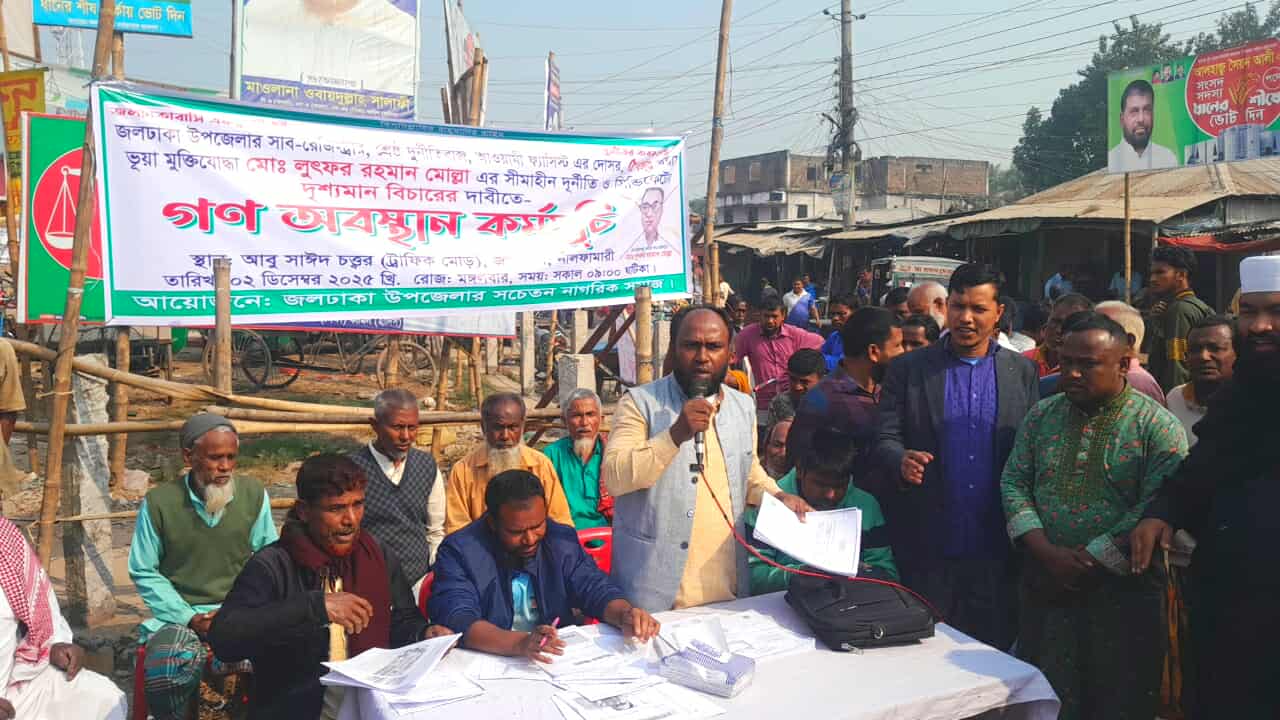 জলঢাকা সাব-রেজিস্টারের দুর্নীতির বিচারের দাবীতে গন অবস্থান কর্মসূচি