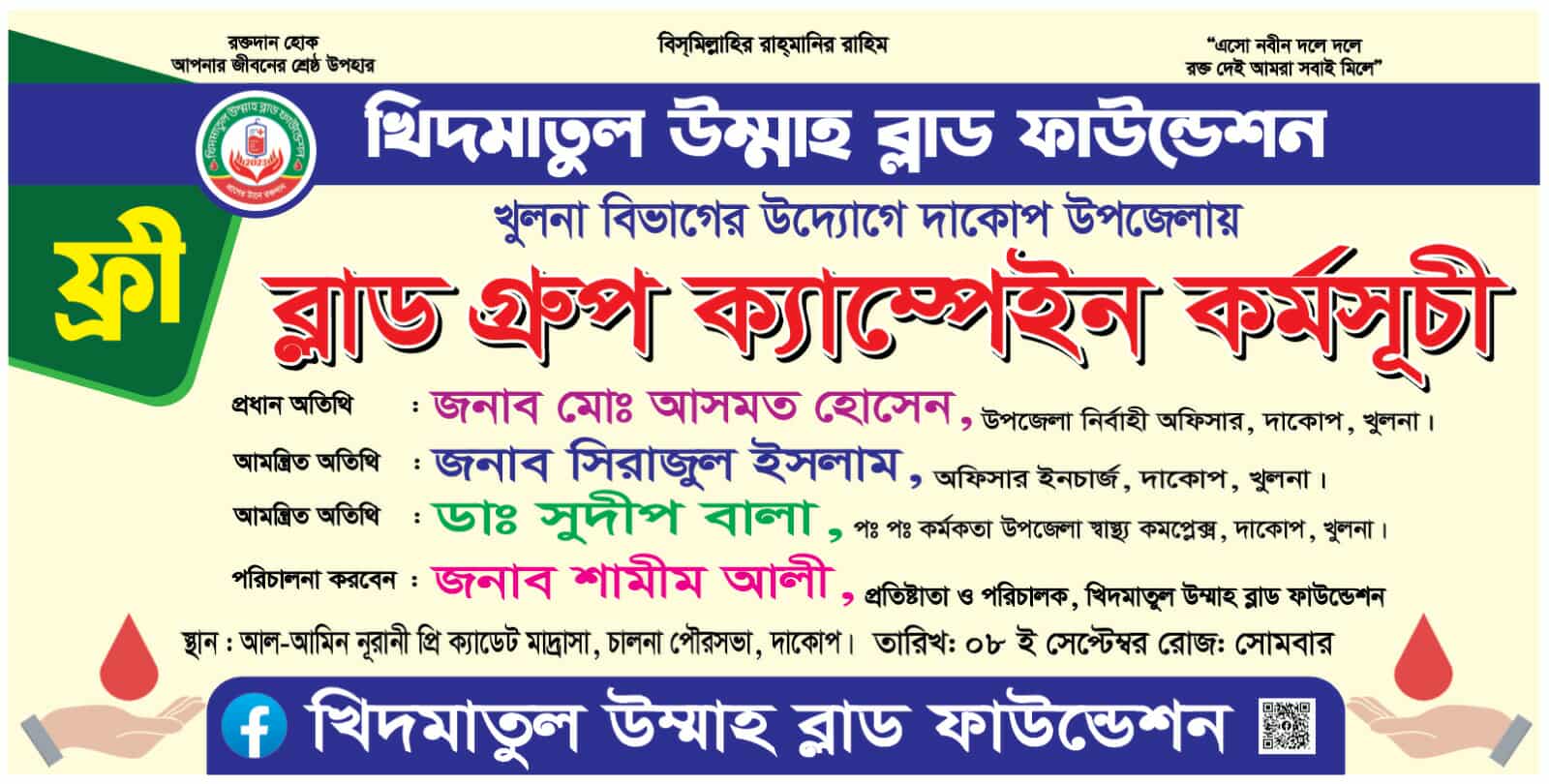 রক্ত দিয়ে এনেছি স্বাধীনতা,রক্ত দিয়ে বাঁচাবো মানবতা”এই শ্লোগানকে সামনে রেখে মাদারীপুরের কালকিনিতে সেচ্ছাসেবী সংগঠন কালকিনি ব্লাড ডোনেশন সোসাইটির ৫ম প্রতিষ্ঠা